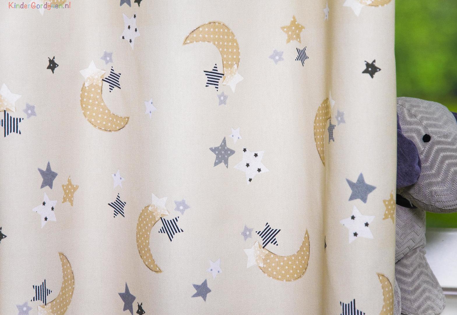 Wat een schitterende kwaliteit gordijnstof! Zien is geloven, zo mooi soepel geweven én maar liefst 280 cm breed! Dat betekent dat het babykamer gordijn meestal naadloos kan worden gemaakt. De is print is gedrukt op een heel fijn geribde stof, wat een vlotte & sportieve uitstraling geeft. Het sterretjes & maantjes patroon is leverbaar in 3 verschillende ondergrondkleuren. Eigentijds blauw- grijs voor de jongenskamer, pastel roze - grijs voor meisjes slaapkamer en camel grijs voor als je liever geheim wilt houden welk lief kleintje er komt slapen. De maan is hier 7 cm groot en samen met de sterren ernaast 9 cm breed. Door het rustig herhalende patroon kan je dit gordijn uitstekend tot de grond laten confectioneren. Wanneer je graag extra verduistering wenst dan optie voeren aanvinken in het bestelproces. Kortom, deze fraaie stofserie is een aanwinst binnen onze enorme collectie!