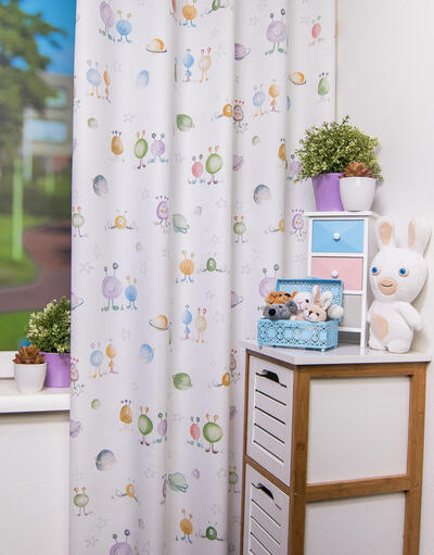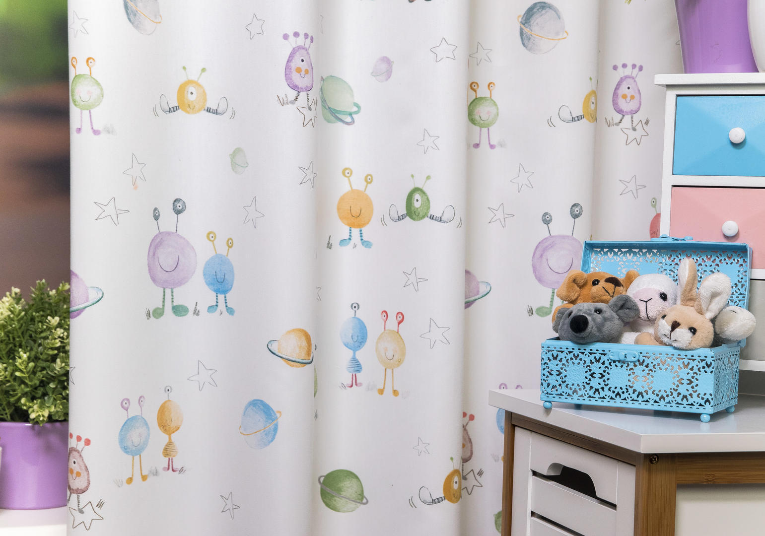 Deze gordijnstof met de naam Aliënsmile is gemaakt van de beste materialen waardoor het gordijn mooi in de plooi valt.