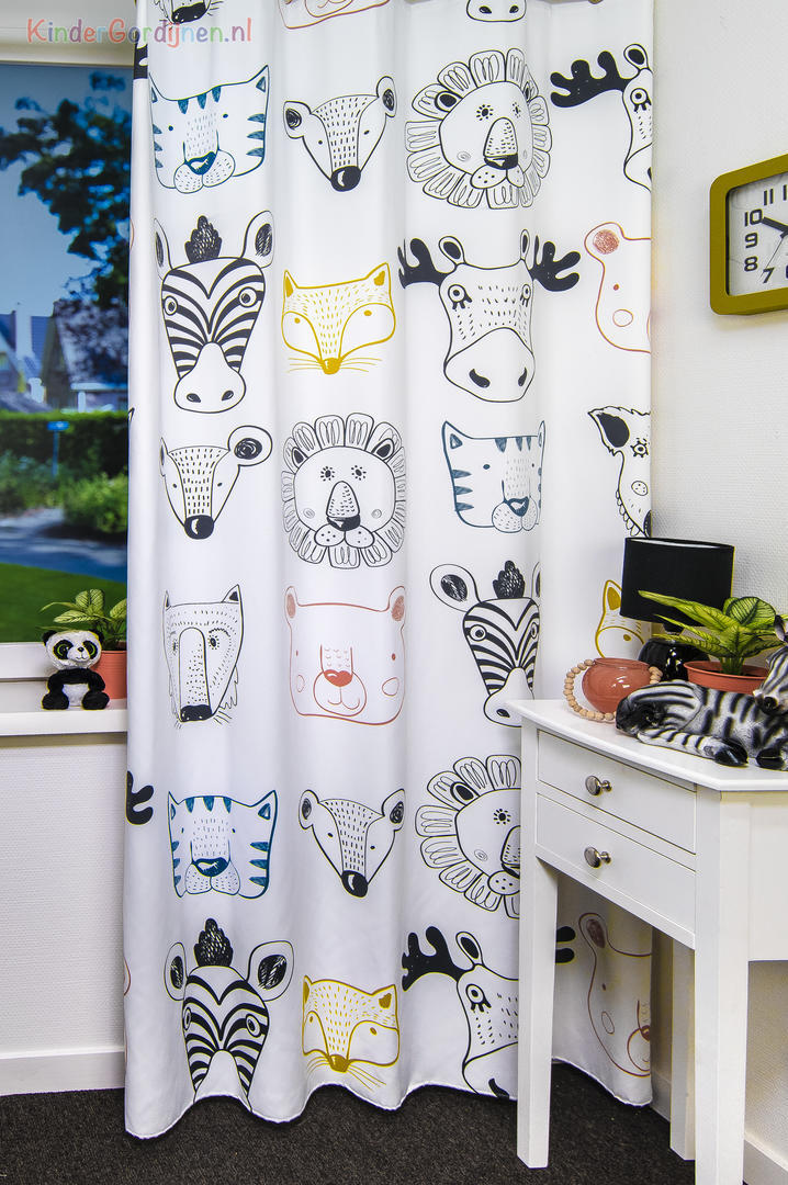 Een prachtig gordijn voor je raam! Als jij je eigen gordijnen kiest, wordt het helemaal jouw kamer. Deze gordijnstof met de naam Animal Faces is gemaakt van de beste materialen waardoor het gordijn mooi in de plooi valt. Het aantal te gebruiken banen gordijnstof van 140 cm breed wordt door ons vakkundig aan elkaar geconfectioneerd zodat het dieren patroon van 132 cm mooi doorloopt. Laat voor een aangename isolatie en extra verduistering de gordijnen voeren: een verschil van dag en nacht!