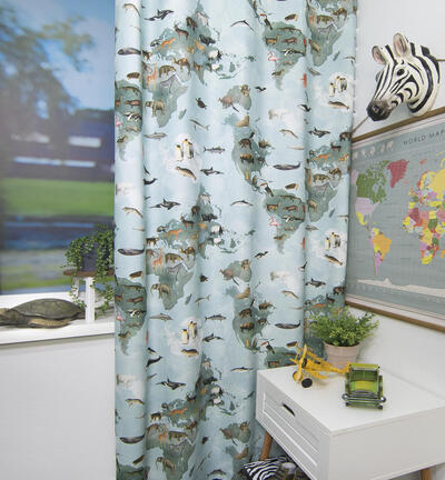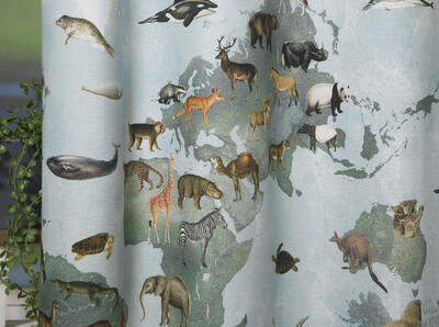 Deze gordijnstof met de naam AnimalsWorld is gemaakt van de beste materialen waardoor het gordijn mooi in de plooi valt.