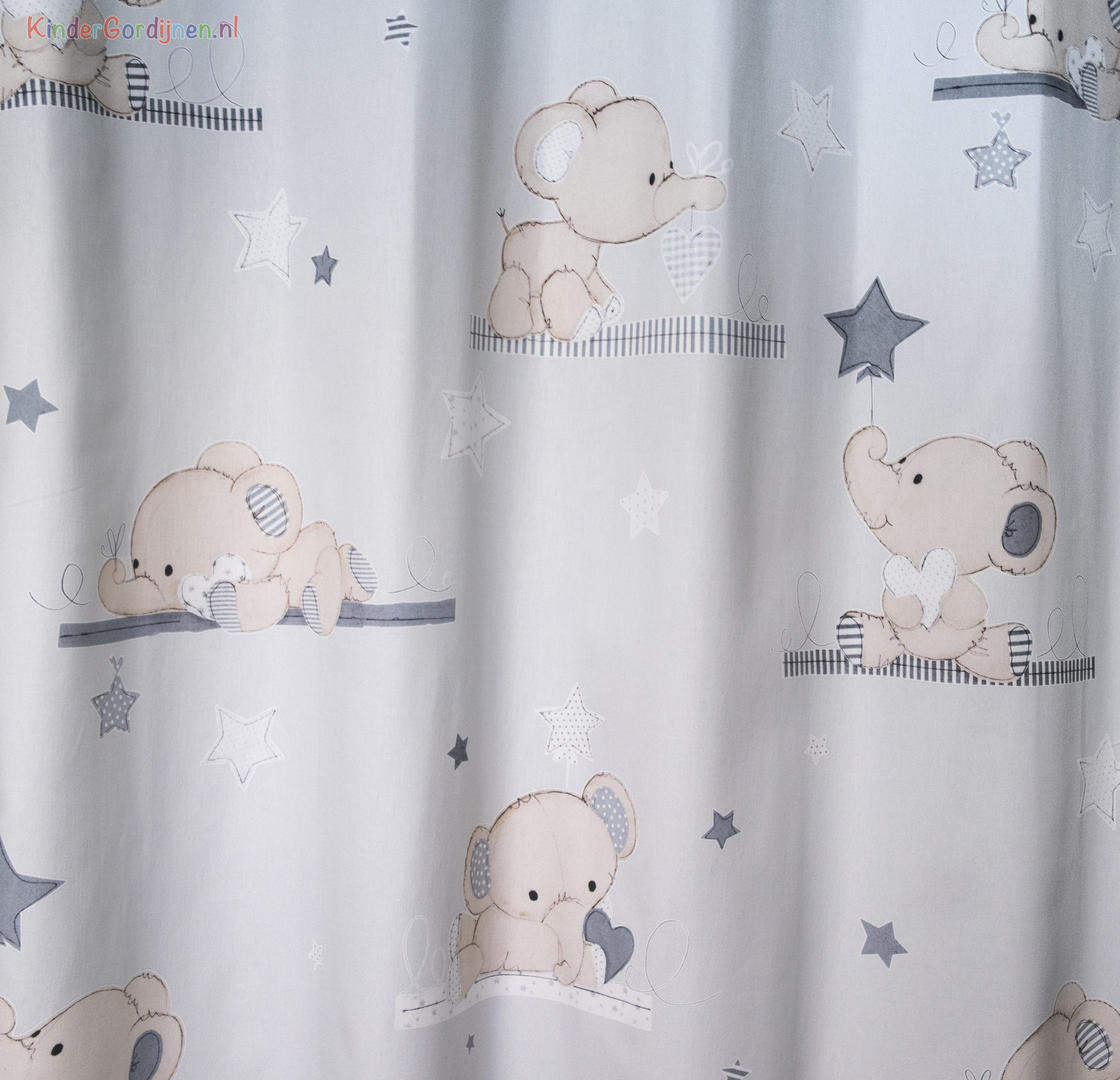 Wat een schitterende kwaliteit gordijnstof! Zien is geloven, zo mooi soepel geweven én maar liefst 280 cm breed! Dat betekent dat het babykamer gordijn meestal naadloos kan worden gemaakt. De schattige beren print is gedrukt op een heel fijn geribde stof, wat een vlotte sportieve uitstraling geeft. De olifantjes zijn op de voorzijde gedrukt, maar liefst 22 cm groot en leverbaar in 3 verschillende ondergrond kleuren. Eigentijds vergrijsd blauw voor de jongenskamer, pastel roze voor meisjes slaapkamer en warm zachtgrijs voor als je liever geheim wilt houden welk lief kleintje er komt slapen. Door de royale print kun je het gordijn uitstekend tot de grond laten confectioneren. Wanneer je extra verduistering wenst, graag optie voeren aanvinken in het bestelproces. Kortom, deze fraaie stofserie is een aanwinst binnen onze enorme collectie! ~Have a happy elephants day