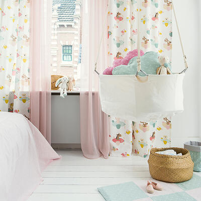 De inrichting van de babykamer is een bijzonder, liefdevol moment. U creëert de wereld waar uw dochtertje of zoontje uren indrukken gaat opdoen. De gordijnen zijn daarbij een markant element. Achter het kindergordijn schuilt de magie van de dag en de nacht. Die eerste jaren kiest u het liefst voor een tedere, vriendelijke rust. Een kijkspel dat veilig en vertrouwd voelt. Voor de tweeling is er een lieve voorstelling met allerlei jonge tweelingdieren.