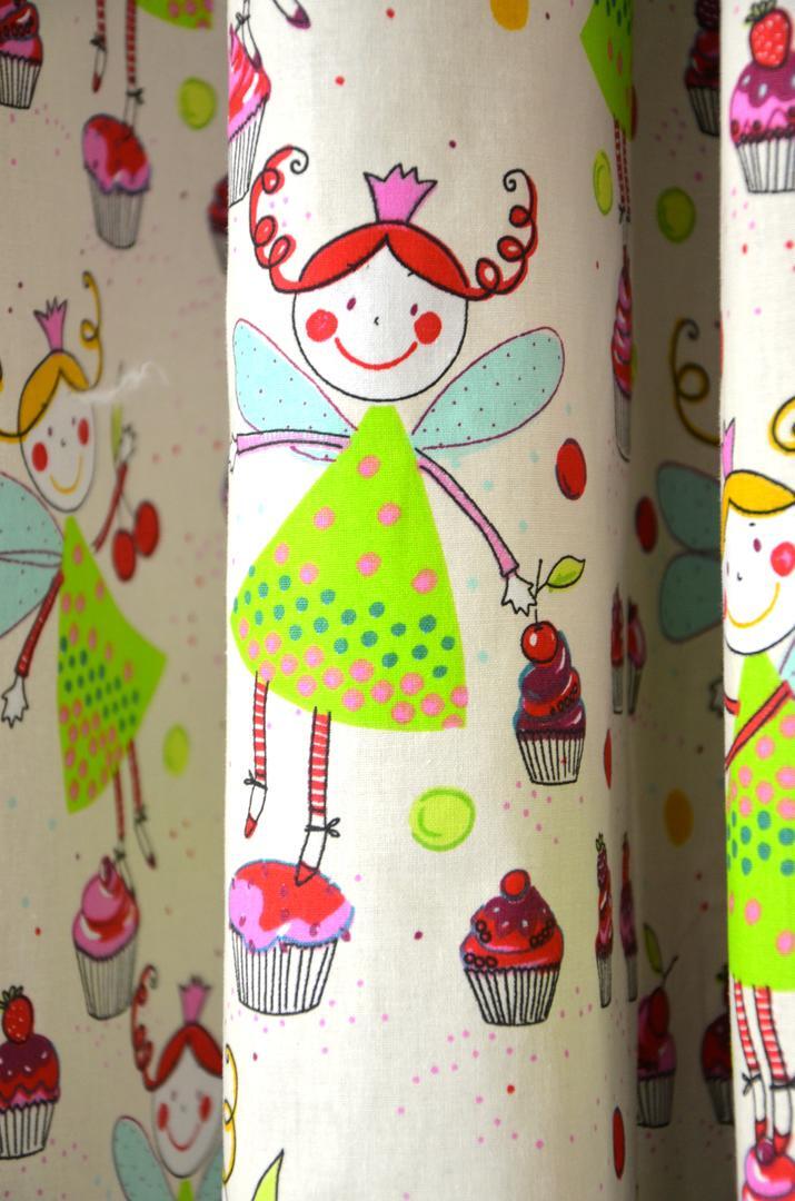Typisch meidengordijn met vrolijke prinsesjes en heerlijke muffins! Met deze kindergordijnen gaat uw dochtertje ongetwijfeld graag spelen of slapen in haar kinderkamer.