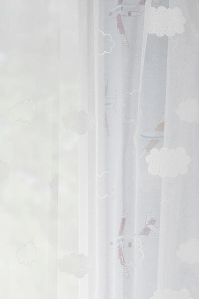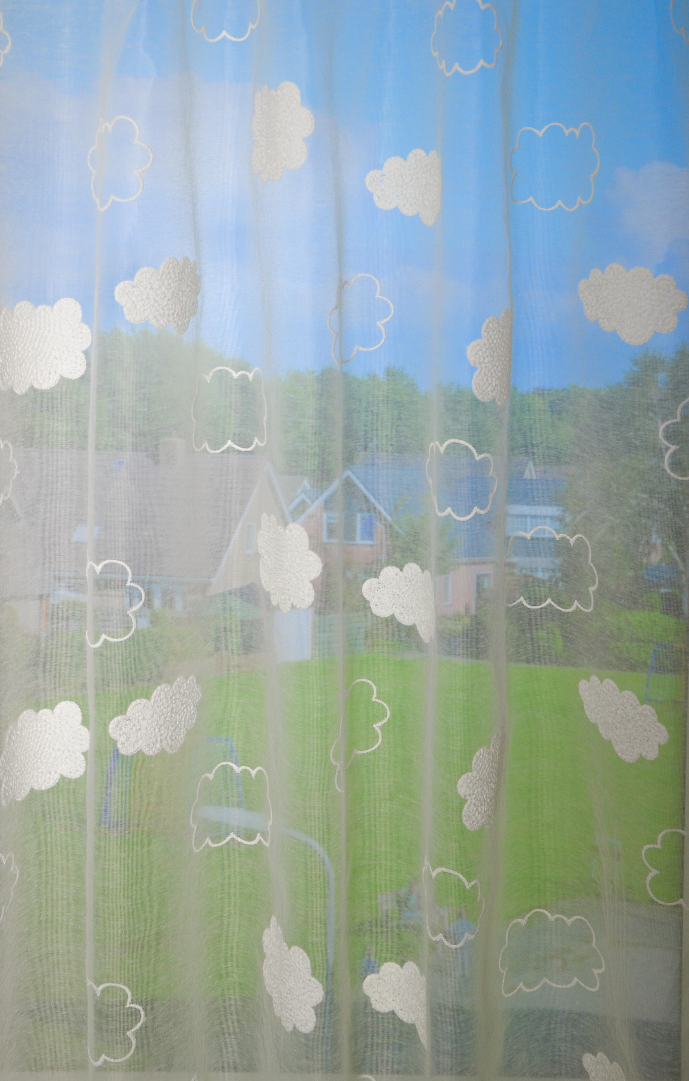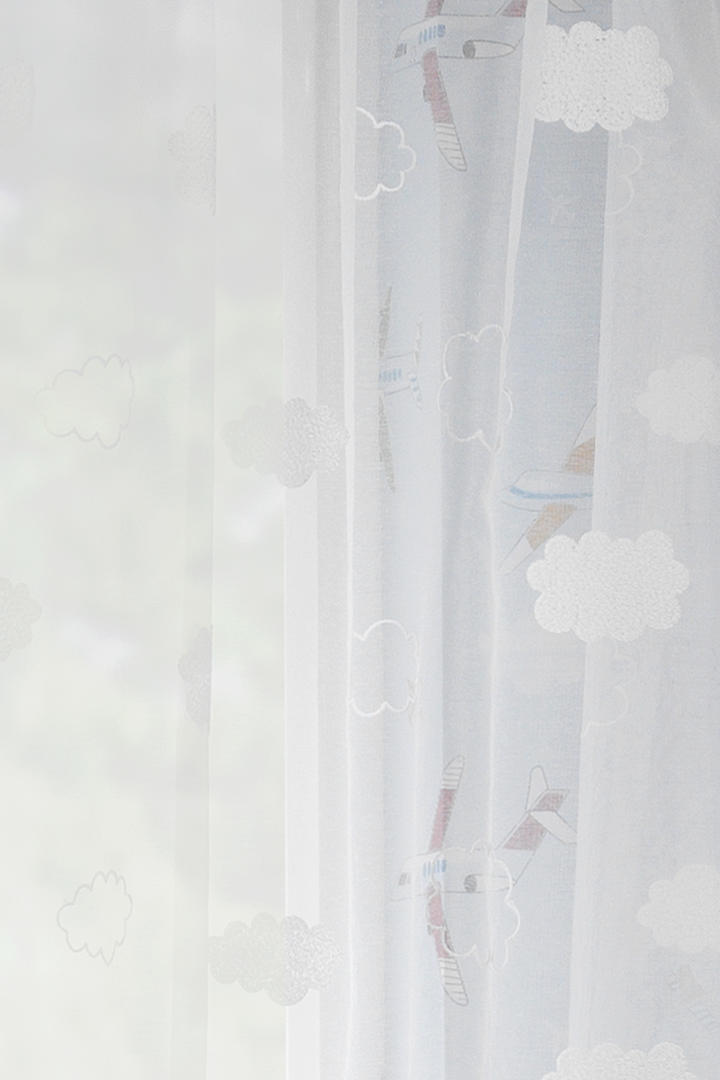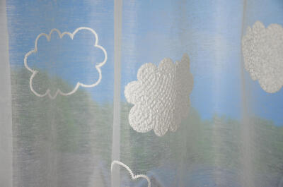 Super fraaie en luchtige voile. De wolken zijn er op geborduurd, wat extra reliëf en diepte geeft. Deze aaibare structuur geeft bij zgn. “harde” vloeren en gestuukte wanden, net dat beetje extra zachtheid. Een warm-wit-wolkendek, wie wil dat nu niet als vitrage? Door de neutrale kleur is het transparante gordijn tijdloos en makkelijk te combineren. Denk aan fraaie kiezelkleuren en warm-grijzen. Kortom voor iedere kinderkamer een super voile!