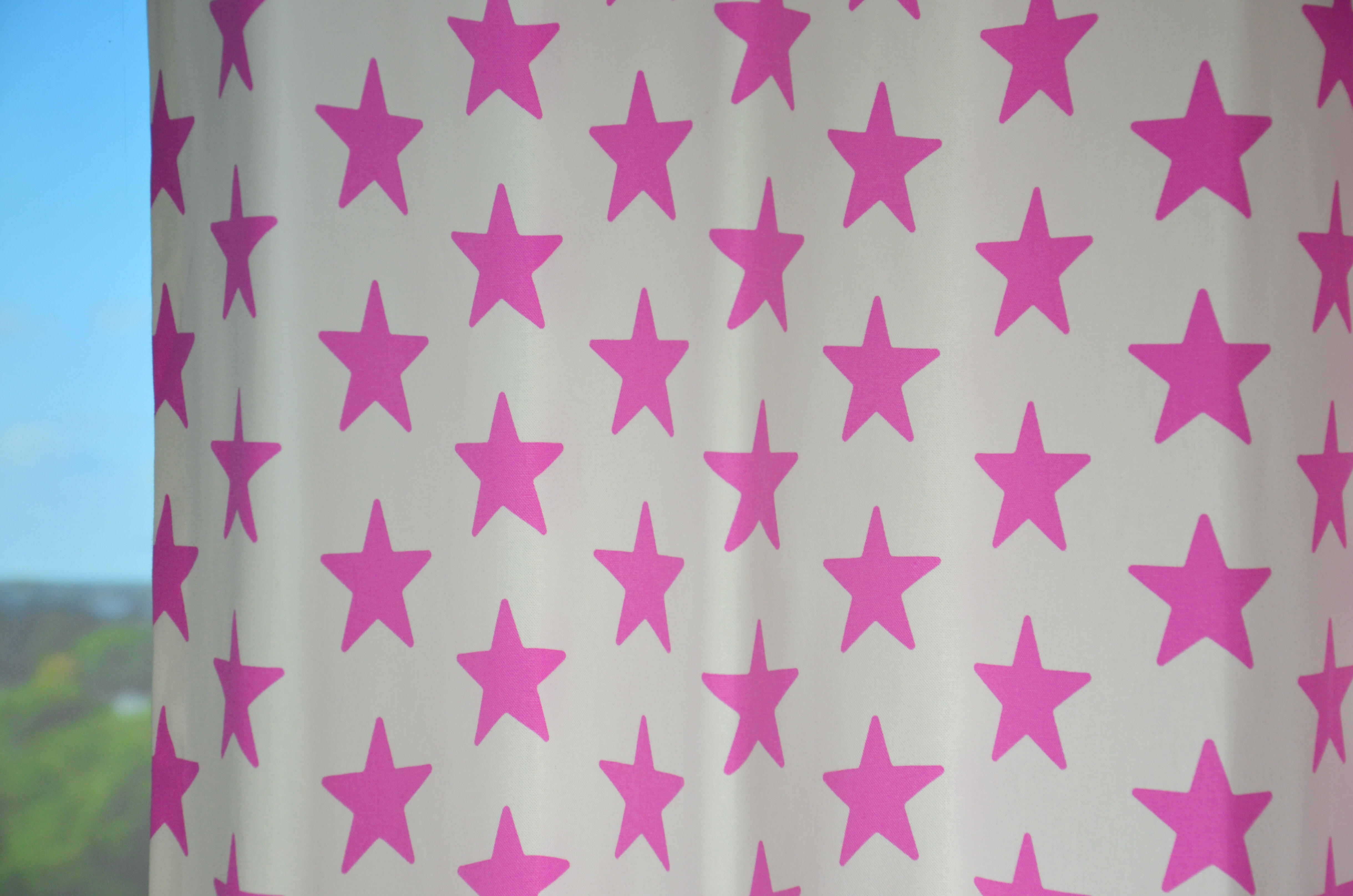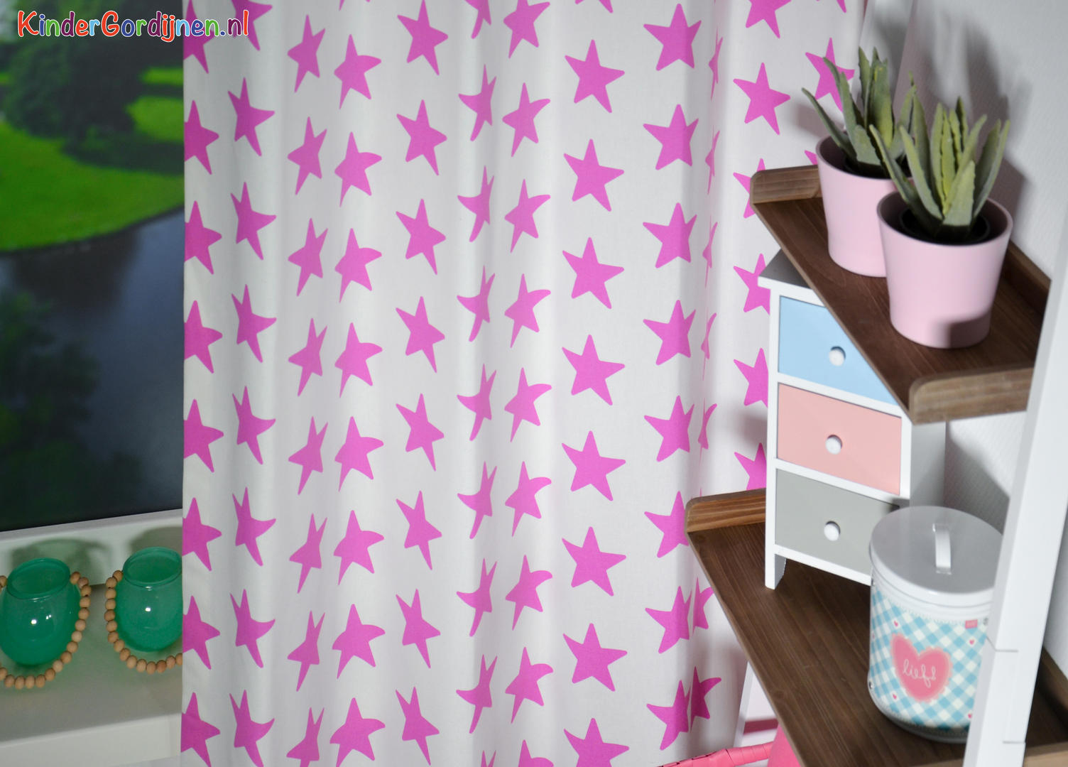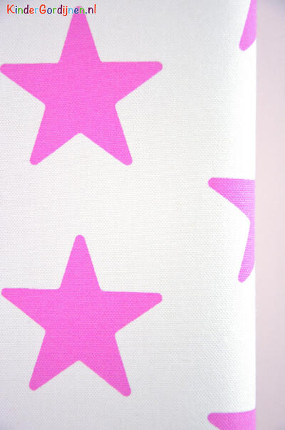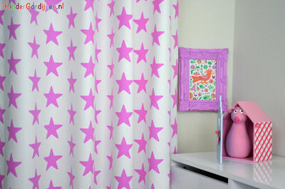 Ga je voor roze of ga je voor blauw? Dit leuke én kwalitatief hoogwaardige sterrengordijn kan je perfect afstemmen op jouw kindje. Sterren zijn sprankelend en sterren zijn tijdloos. Deze zijn 8 cm in doorsnede en aan de voorzijde gedrukt op de fraaie, robuust geweven katoen. Dat geeft een zgn. sportieve uitstraling. De ondergrondkleur is warmwit; dim-out voering geeft eventueel extra verduistering. Het thema kan je aanvullen met gestreept behang of een pasteltoon als muurverf. (zachtroze of zachtblauw) Zie jij het plaatje al voor je?