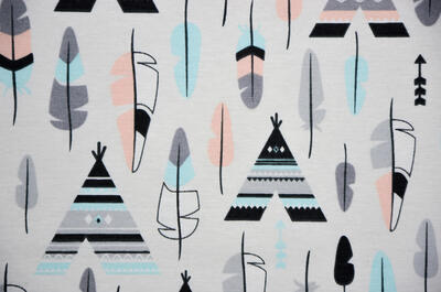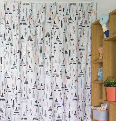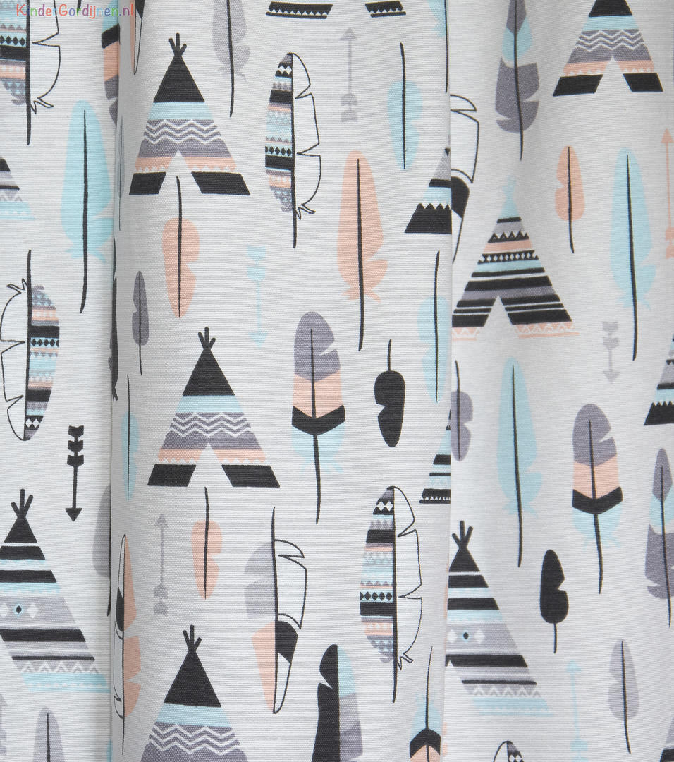 Schattige gordijnen voor de kinderkamer met tipi print. 100% katoen. Voor verduistering even voering toevoegen in het bestelproces.
