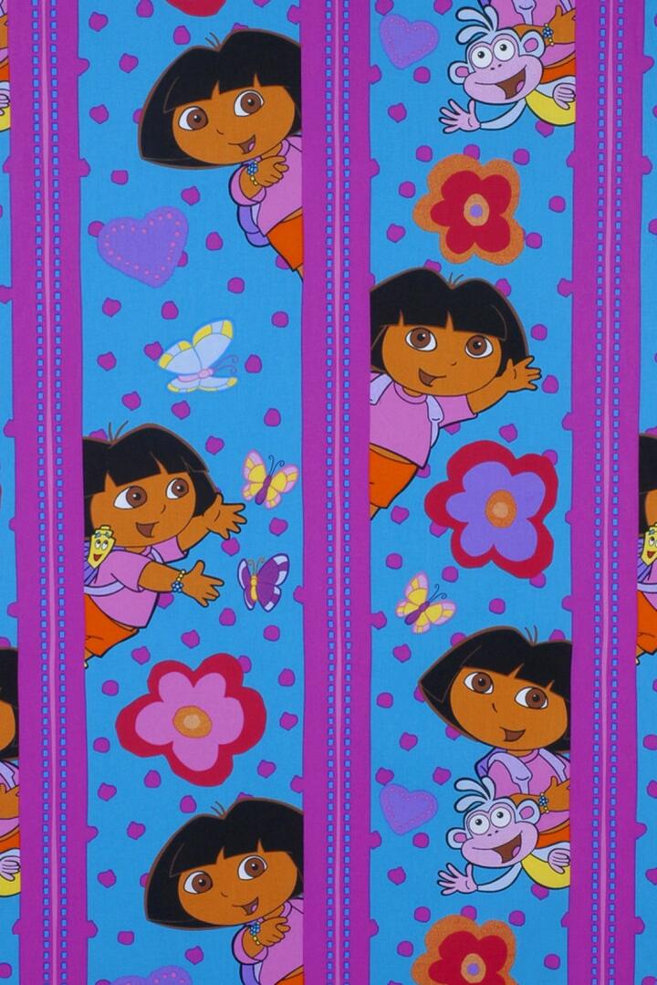 Op dit gordijn worden vrolijke plaatjes van Dora afgewisseld met kleurrijke strepen in de lengterichting. Dit gordijn past precies in de kinderkamer van avontuurlijke meisjes!