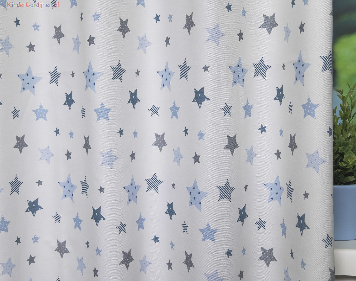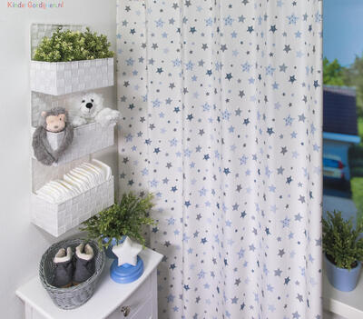 Wat een schitterende kwaliteit gordijnstof! Zien is geloven, zo mooi soepel geweven én maar liefst 280 cm breed! Dat betekent dat het babykamer gordijn meestal naadloos kan worden gemaakt. De is print is gedrukt op een heel fijn geribde stof, wat een vlotte & sportieve uitstraling geeft. Het sterretjes patroon is op de voorzijde gedrukt op de warm witte ondergrond en leverbaar in 3 verschillende kleuren. Blauw- grijs voor de jongenskamer, pastel roze - grijs voor meisjes slaapkamer en camel – grijs voor als je liever geheim wilt houden welk lief kleintje er komt slapen. Combineren kan met een verduisterend rolgordijn uit onze collectie. Of optie voeren aanvinken in het bestelproces wanneer je extra verduistering wenst. Kortom, deze fraaie stofserie is een aanwinst binnen onze enorme collectie!