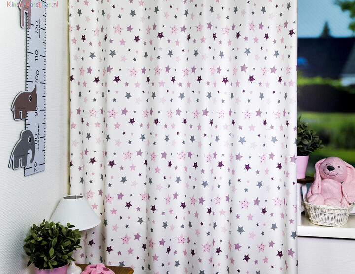 Wat een schitterende kwaliteit gordijnstof! Zien is geloven, zo mooi soepel geweven én maar liefst 280 cm breed! Dat betekent dat het babykamer gordijn meestal naadloos kan worden gemaakt. De is print is gedrukt op een heel fijn geribde stof, wat een vlotte & sportieve uitstraling geeft. Het sterretjes patroon is op de voorzijde gedrukt op de warm witte ondergrond en leverbaar in 3 verschillende kleuren. Blauw- grijs voor de jongenskamer, pastel roze - grijs voor meisjes slaapkamer en camel grijs voor als je liever geheim wilt houden welk lief kleintje er komt slapen. Combineren kan met een verduisterend rolgordijn uit onze collectie. Of optie voeren aanvinken in het bestelproces wanneer je extra verduistering wenst. Kortom, deze fraaie stofserie is een aanwinst binnen onze enorme collectie!