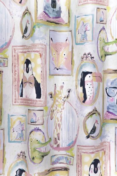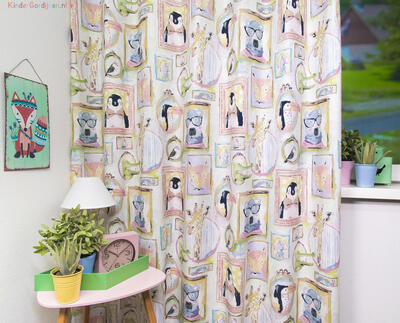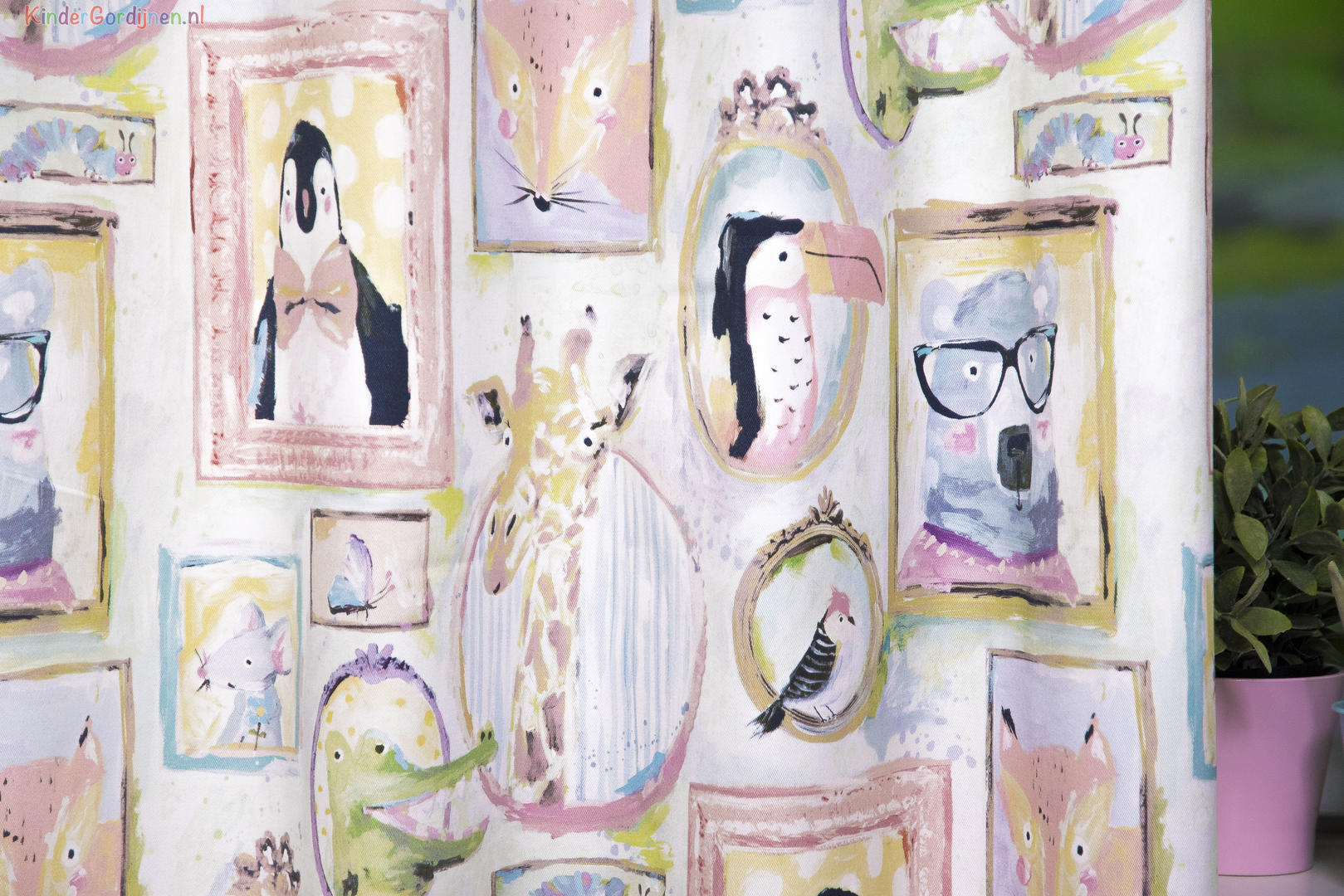 Ahhh . een ingelijste blikvanger, dat is dit kindergordijn! Verschillende dieren hebben zich met een vlotte penseeltechniek mogen laten afbeelden. Dat dat is leuk, want nu kunnen zij jouw slaapkamer opleuken. Het gordijn is leverbaar in 3 verschillende kleurpaletten: pastel roze met andere frisse tinten, aqua blauw met zacht lila en fris groen en een fraaie mix van al deze kleuren in een verpoederde uitvoering. Deze zachte tinten passen perfect in de huidige woontrend en combineren zeer goed met een lichte pastel op de wand. Zie je het plaatje al voor je? De print is op de voorzijde gedrukt van de matte, soepel vallende stof. De schilderijlijstjes zijn lekker royaal, meneer beer is b.v. 18 x 18 cm groot. Voor verduistering desgewenst voeren.