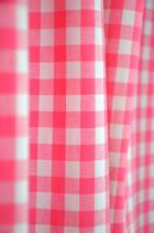 Dit overgordijn met neutraal ruitmotief is leverbaar in veertien verschillende kleuren. De ruit is ongeveer 1,5 centimeter.