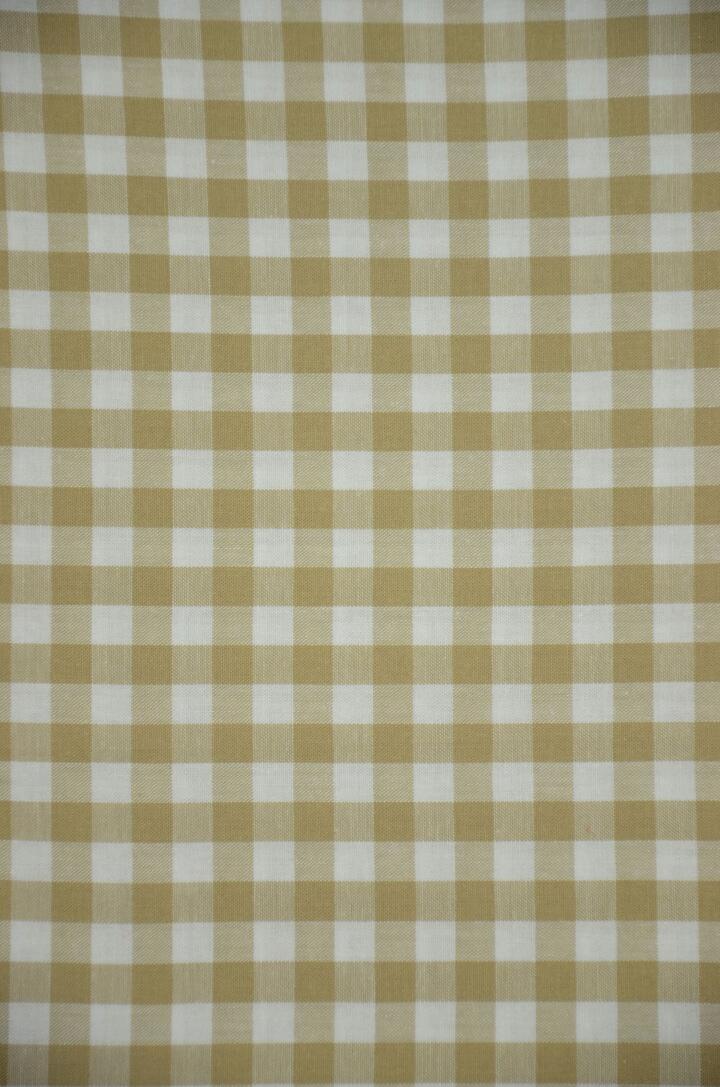Dit overgordijn met neutraal ruitmotief is leverbaar in veertien verschillende kleuren. De ruit is ongeveer 1,5 centimeter.