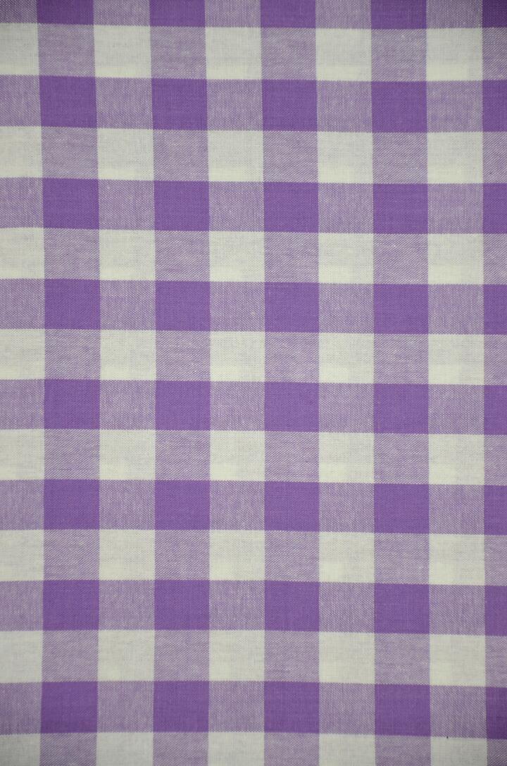 Dit overgordijn met neutraal ruitmotief is leverbaar in veertien verschillende kleuren. De ruit is ongeveer 2 cm..