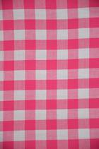 Dit overgordijn met neutraal ruitmotief is leverbaar in veertien verschillende kleuren. De ruit is ongeveer 2 cm..