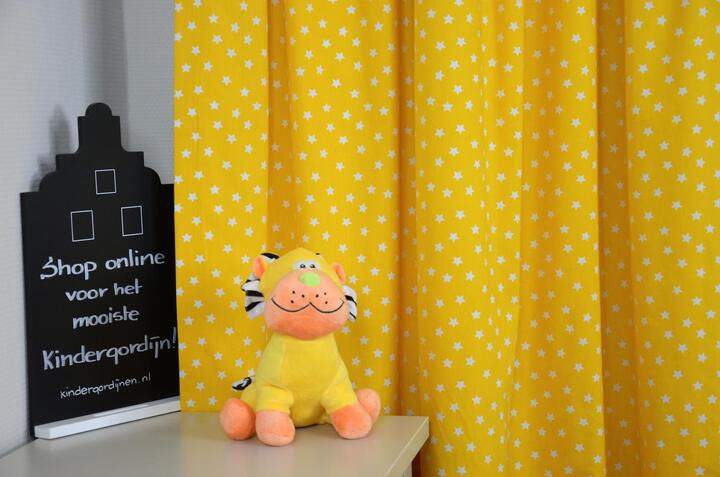 Deze vrolijk gekleurde kindergordijnen met fonkelende sterren zijn verkrijgbaar in 14 spetterende uitvoeringen.