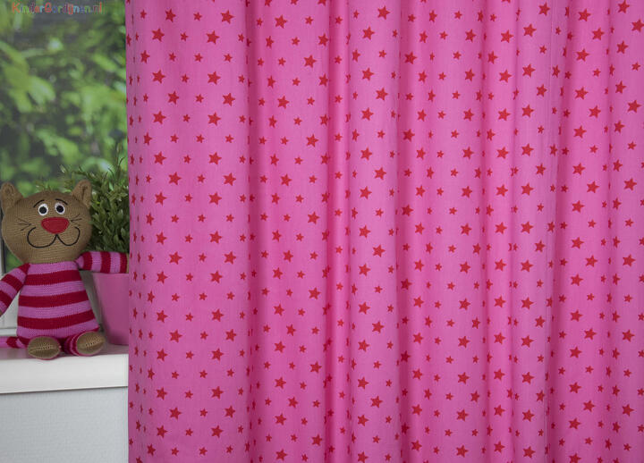 Een sterrenhemel voor je raam, SCHITTEREND! De sterren zijn gedrukt op soepele, matte katoen. Er zijn 6 verschillende kleurcombinaties om uit te kiezen. Rustig én tijdloos voor jongens en meisjes. Je kunt het gordijn verduisterend laten voeren, dit is ook gunstig voor het kleurbehoud. Maak jij het thema af met bijpassende kussentjes?