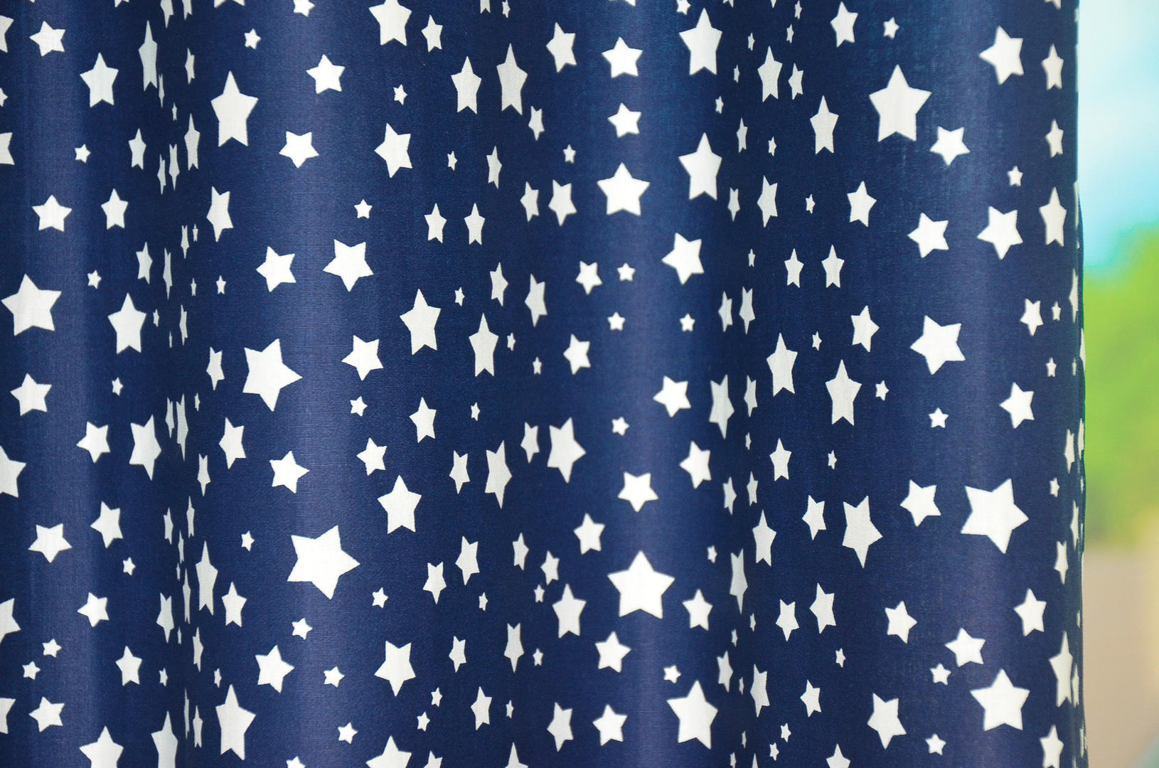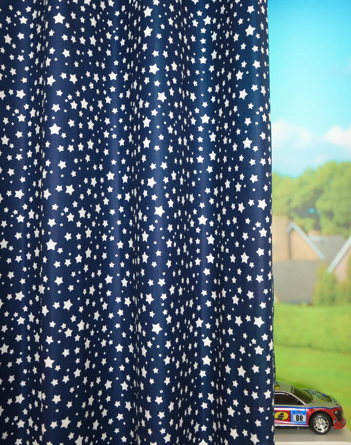 Een sterrenhemel voor je raam, SCHITTEREND! De sterren zijn gedrukt op soepele, matte katoen. Er zijn 13 verschillende kleurcombinaties om uit te kiezen. Rustig én tijdloos voor jongens en meisjes. Je kunt het gordijn verduisterend laten voeren, dit is ook gunstig voor het kleurbehoud. Maak jij het thema af met bijpassende kussentjes?