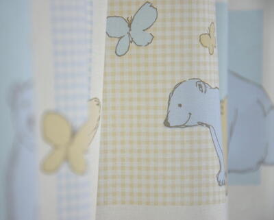 Dit katoenen gordijn met zachte kleuren past perfect in de babykamer. Met deze lieve beren voor het raam dommelt uw (klein)kind zo in slaap.