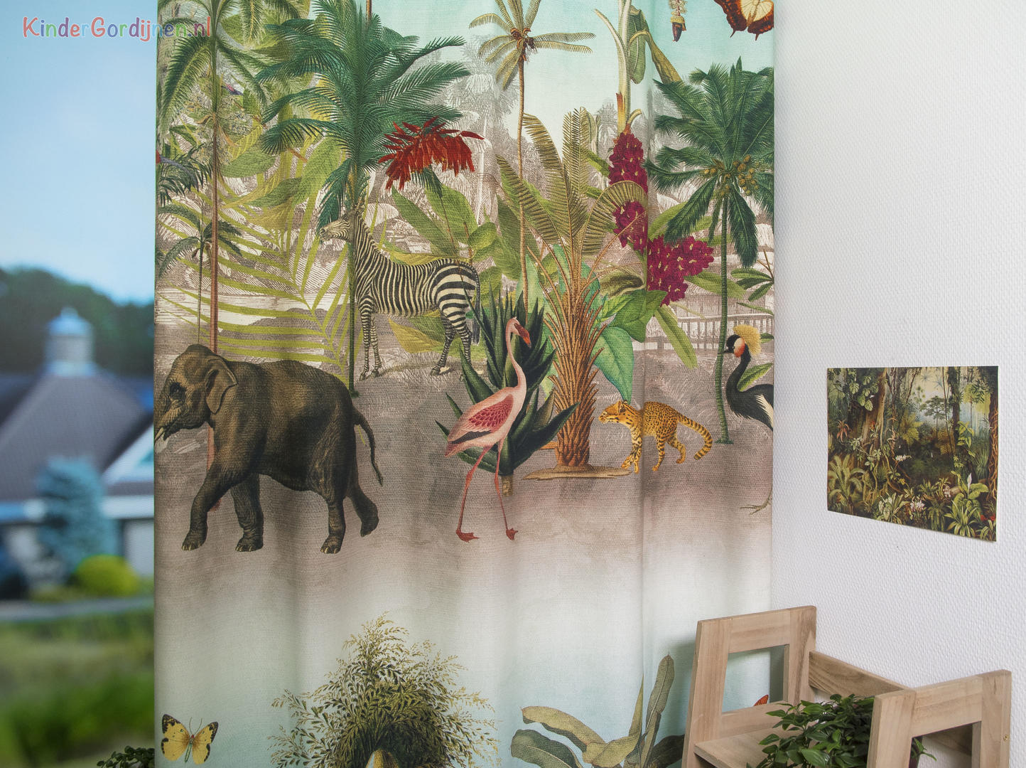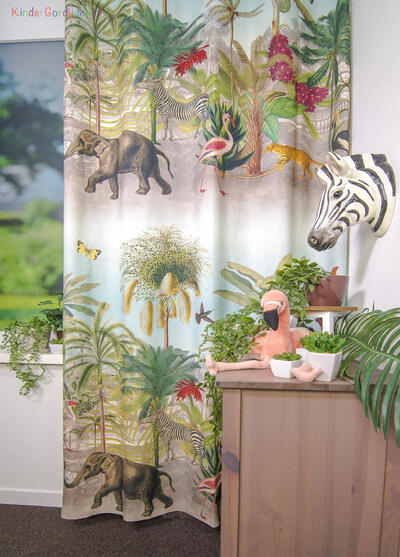 geconfectioneerd zodat het jungle en safari patroon van 132 cm mooi doorloopt.