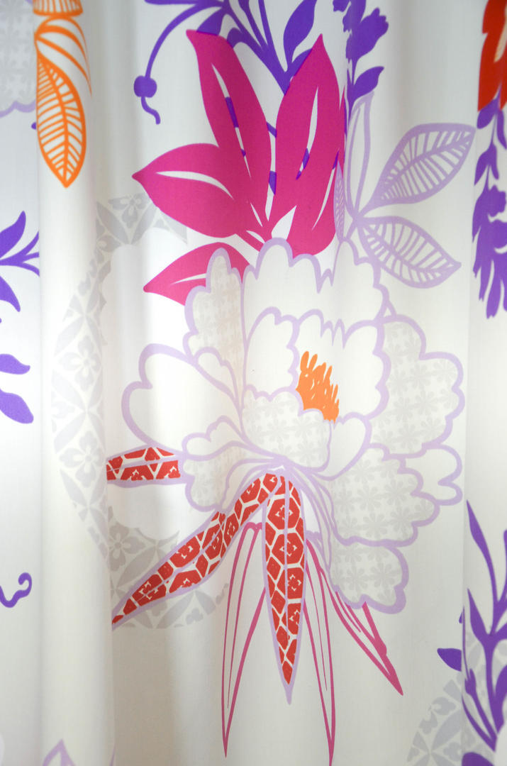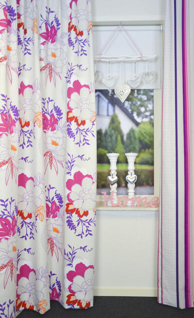 Levendig bloemengordijn met een felgekleurde prent. De gordijnstof bevat polyester en viscose en voelt daardoor heerlijk zacht en soepel aan.
