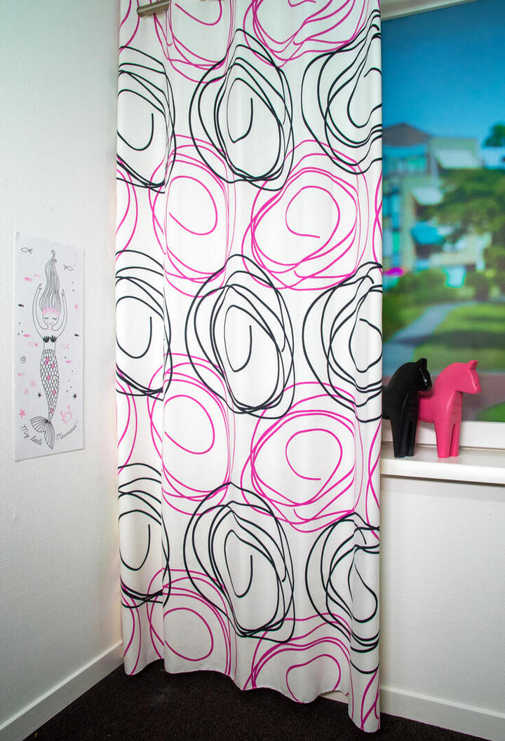 Een prachtig gordijn voor je raam! Als jij je eigen gordijnen kiest, wordt het helemaal jouw kamer. Deze gordijnstof met de naam Contour is gemaakt van de beste materialen waardoor het gordijn mooi in de plooi valt. Het aantal te gebruiken banen gordijnstof van 140 cm breed wordt door ons vakkundig aan elkaar geconfectioneerd zodat het meisjes patroon van 64 cm mooi doorloopt. Laat voor een aangename isolatie en extra verduistering de gordijnen voeren: een verschil van dag en nacht!