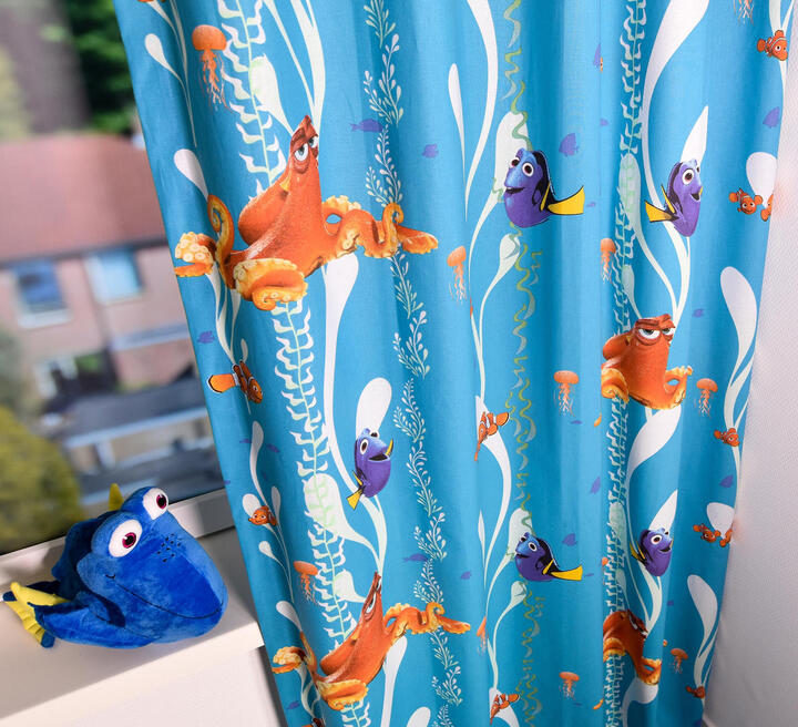 Deze gordijnstof met de naam Finding Dory & Nemo is gemaakt van de beste materialen waardoor het gordijn mooi in de plooi valt.
