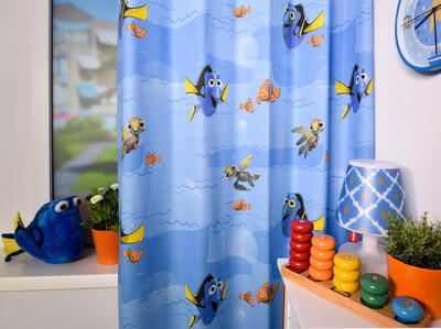 Deze gordijnstof met de naam Finding Dory is gemaakt van de beste materialen waardoor het gordijn mooi in de plooi valt.