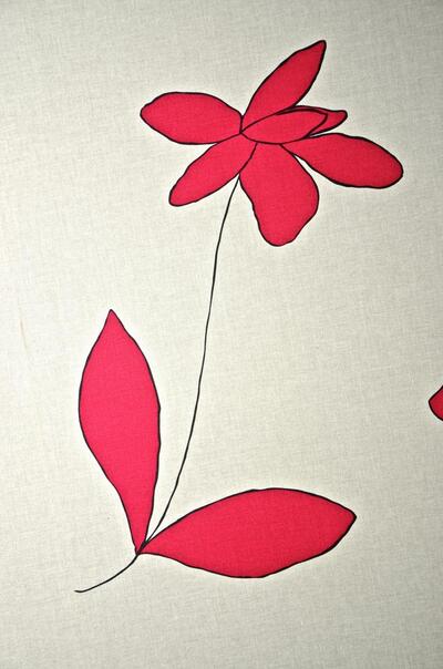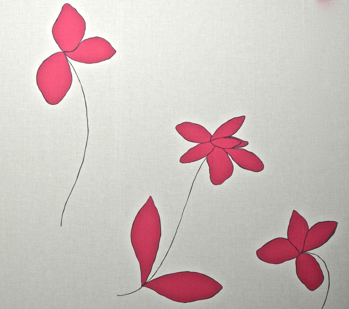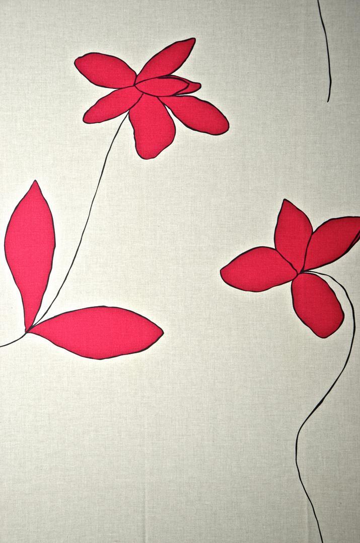 Prachtig rustgevende gordijnstof met als illustratie, pengetekende bloemen...