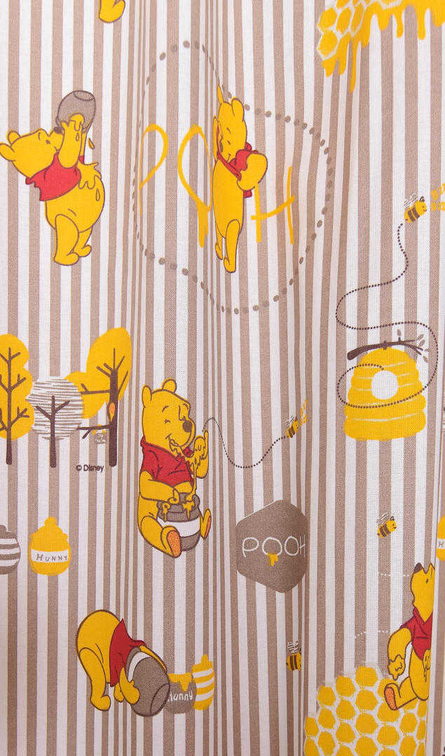 Dat Winnie de Poeh dol is op honing wordt nu wel heel snel duidelijk... Laat uw kinderen lekker spelen op de kinderkamer terwijl Winnie een pot honing leegsnoept. KinderGordijnen.nl kan de katoenen gordijnstof voeren tot een verduisterend kindergordijn.