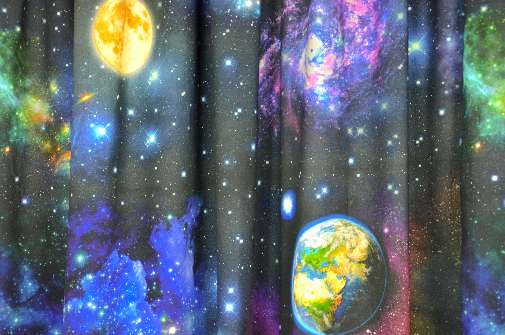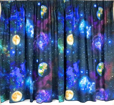 SUPER GAAF digitaal geprint gordijn! De afbeeldingen op de stof zijn super scherp en helder van kleur. De sterren lijken letterlijk in je slaapkamer te stralen! Wie wil dat effect nu niet? Slapen onder de sterrenhemel, fantastisch! Planeet aarde is 17 cm in doorsnede en gedrukt op matte, kwalitatief zware katoen. Dit gordijn is van jong tot oud een gewéldig mooie & bijzondere aanwinst! Slaap jij voortaan ook nabij ons sterrenstelsel?