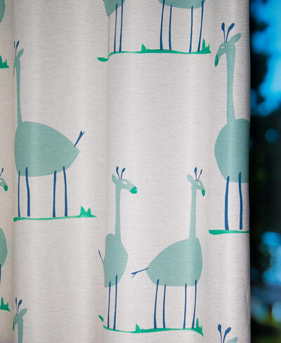 De Giraffe is een nieuwe verduisterende stof voorzien van een fraaie safari print. Het unieke is de isolerende en reflecterende achterzijde van de stof, deze zorgt er voor dat de stof warmte, koude en geluidsisolerend is.
