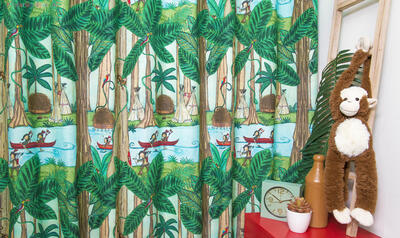 Op ontdekkingsreis in de jungle! Voor zowel jongens als meisjes is een slaapkamer met safari of jungle thema populair. Wilde dieren, bamboe, oerwoud, tipi's, lianen, aapjes, exotische vogels en indianen. Met deze gordijnen in de kinderkamer is het alsof je zo de jungle in stapt.