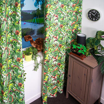 Deze gordijnstof met de naam Jurassic is gemaakt van de beste materialen waardoor het gordijn mooi in de plooi valt.