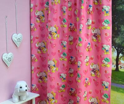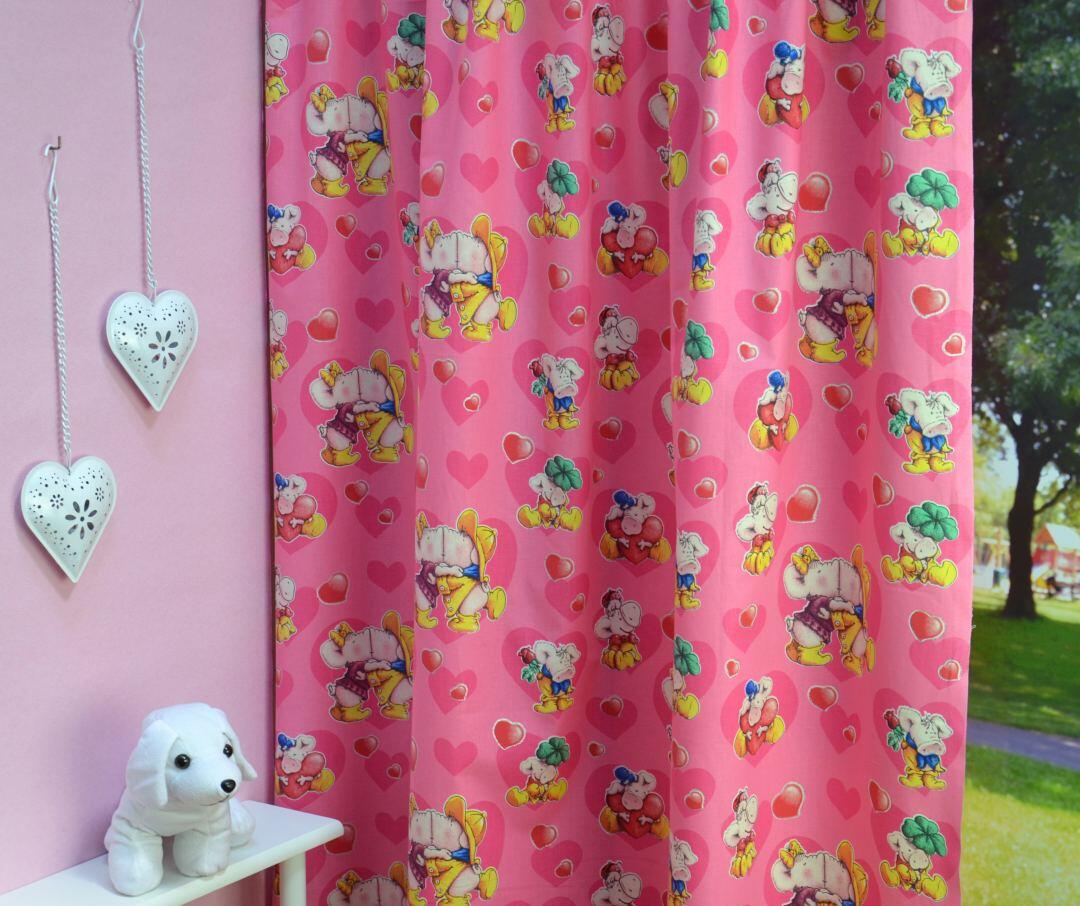 Vrolijk elke kinderkamer op met deze zoenende varkentjes op het gordijn! Dit vrolijke motief is beschikbaar in een roze en blauwe uitvoering en geschikt voor zowel jongens als meisjes.