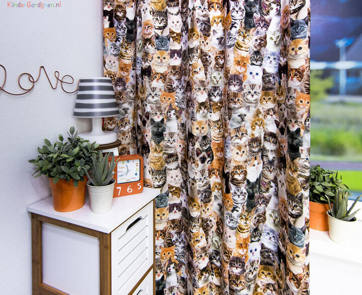 Prrr, Prrrr. Katten zijn geweldige gezelschapsdieren. Ze houden van kroelen en kopjes geven en als je ze kunt aaien is het helemaal top! . Kinderen houden van katten en kunnen er zich uren mee vermaken. In de vorm van samen spelen en kattenhotels maken. . De materialen die voor dit mooie gordijn gebruikt zijn, zijn 100% katoen en 65% polyester. De kittens worden er digitaal opgeprint. Ook is er de mogelijkheid om de gordijnen halfverduisterend of helemaal verduisterend te maken. . Kom jij kijken ?