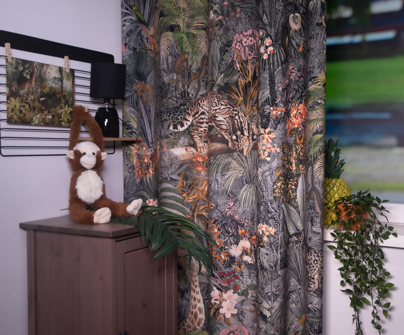 geconfectioneerd zodat het jungle en safari patroon van 138 cm mooi doorloopt.