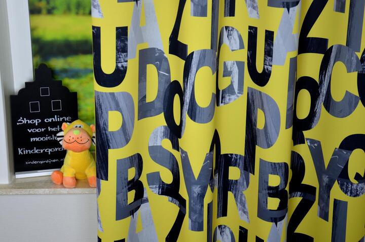 Origineel gordijn voor de kinderkamer in verschillende kleurenvarianten. Het polyester gordijn heeft een verduisterende werking. Dit weert niet alleen zonlicht, het werkt ook isolerend. Kindergordijnen.nl verwerkt het gratis tot kant-en-klaar gordijn.
