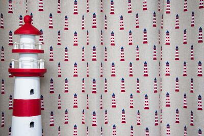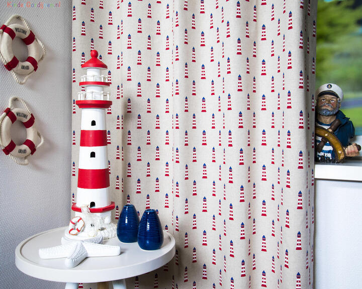 Deze gordijnstof met de naam Lightouses is gemaakt van de beste materialen waardoor het gordijn mooi in de plooi valt.