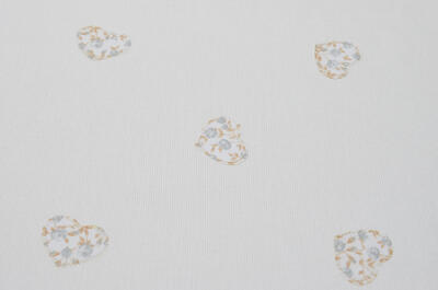 Dit is een gordijn voor de babykamer waar zachte luxe mag worden uitgestraald. Het gordijn heeft een opgestikt hartje, al dan niet met contrasterend garen. De ondergrond van de stof is warm wit en heeft een hele fijne wafeltjes structuur. Dat geeft een rijk effect. De speciaal aangebrachte hartjes geven diepte en die schattige charme. Met dit gordijn in jouw kinderkamer, eventueel met heel zachtgrijze wanden of zandkleurige muur, heb je een ‘plaat’ van een kinderkamer! (De hartjes zijn op de voorzijde gestikt en de achterzijde is wanneer gewenst te voeren voor een verduisterend effect)
