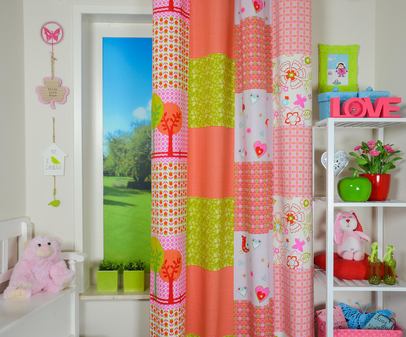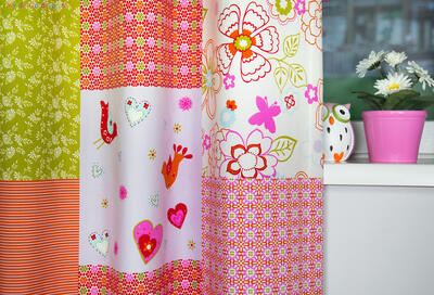 Vrolijk en lief tegelijk. Frisse patchwork print, gedrukt op een fijne soepel vallende katoenen structuurstof. De print is aan de achterzijde licht zichtbaar. Ook heel leuk voor toepassing in een kinderkamer] Te combineren met gordijnstof Mila met een bloemprint of de Tob met klein motiefje uit dit patchworkdessin. Designed by Cozz.
