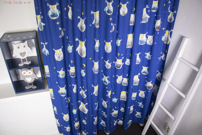 Een súper origineel kinderkamer gordijn, ontworpen door Hanneke de Jager. Deze beeldend kunstenares is schrijver en tevens illustrator van een aantal bijzonder leuke kinderboeken. Zij omschrijft haar stijl als: “Fris, kleurrijk, levendig, speels en zonnig.” Door gebruik van verschillende materialen zoals stofjes van de markt, knopen en gebreide truien, geeft zij haar illustraties iets unieks. Het stylen van de kinderkamer is geweldig leuk om te doen en hoe bijzonder is het om een kindergordijn van een échte ontwerpster te hebben! Dit gordijn heeft guitig kijkende uiltjes van 11 cm groot, gedrukt op diep nachtblauwe, matte en soepel vallende stof. De print is aan de voorzijde gedrukt en als je goed kijkt zie je die kenmerkende ‘Hanneke’ details. Een fijn weergeven stiksel of subtiel kruissteekje. Kortom, wil je kleintje op een bijzondere manier naar dromenland? Geef je eigen topper dan een fantasierijk Hanneke de Jager kindergordijn!