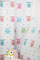 Lief, schattig uiltje, kom je dan bij mij? Lief, slaperig uiltje, maak je mij dan blij? Dit gordijn heeft toch nauwelijks toelichting nodig?! LEUK is gewoonweg súper LEUK! En dan nog eens dim-out ook, dat betekent dat de slaapkamer aangenaam donker wordt, zonder dat je deze stof extra moet laten voeren. De ondergrondkleur is voor- en achter antiek wit. De stof is mat en heel soepelvallend. De uiltjes zijn 5 cm groot. Kortom, de slaapkamer van jouw kleintje is met dit uiltjes gordijn helemaal perfect. En dan . met een knipoog naar dromenland, welterusten!