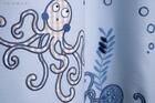 Dit is een bijzondere (nautische) gordijnstof, de octopussen zijn er op geborduurd! sommigen zijn van echte opgestikte patchwork stof gemaakt. Dat geeft een prachtig reliëf aan deze ietwat ruw geweven katoen. Dat effect zorgt zeker voor een extra verfijnde finish aan jouw slaapkamer! Het beestje is zo’n 18 cm groot en zwemt zó jouw kamer in. “swim around lovely octopus!”