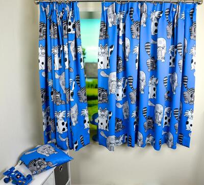 Uw (klein)kinderen zullen voortaan heerlijk slapen met deze verduisterende gordijnen vol gekke katten. En dan worden ze ook nog eens iedere ochtend vrolijk wakker! De speelse gordijnstof is verkrijgbaar in wit, blauw, roze en mosterdgeel.