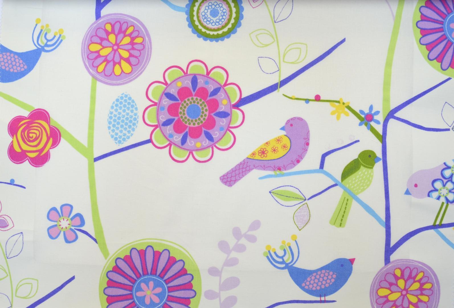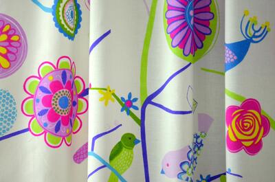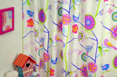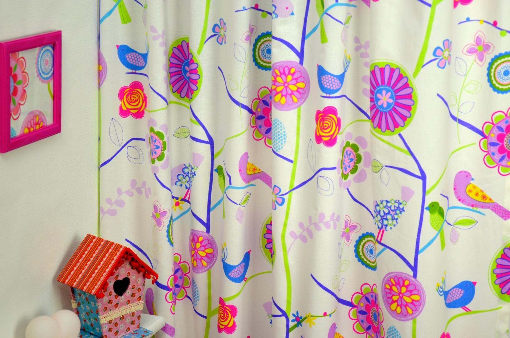 Het wemelt van de kleuren op dit vrolijke meidengordijn vol bloemen en vogels. Vanwege de lichte kleurencombinaties adviseren wij u om het gordijn te laten voeren. Deze optie kunt u aanvinken tijdens het bestelproces.