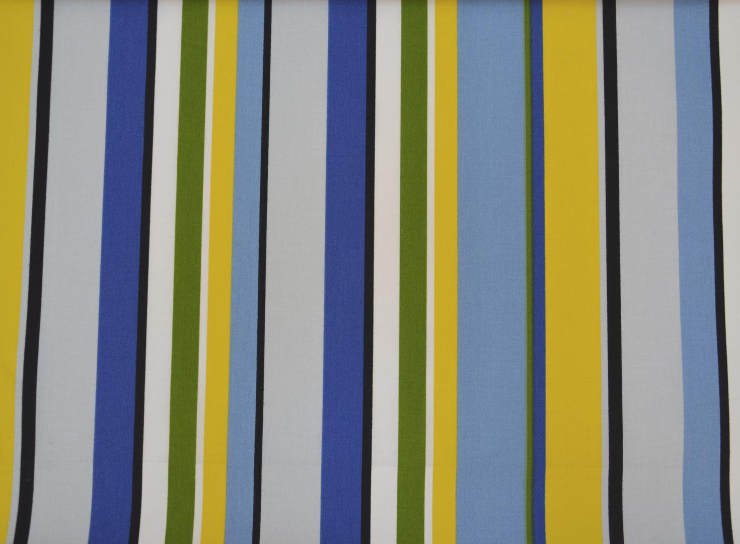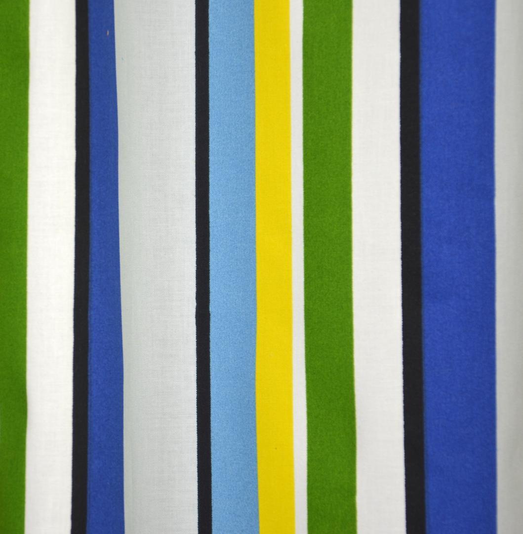 Sfeervol overgordijn met gekleurde strepen in de lengterichting. De strepen hebben ieder een eigen kleur en dikte en zijn verdeeld over de gehele breedte van de stof. Dit tijdloze gordijn is beschikbaar in vijf kleurrijke uitvoeringen.