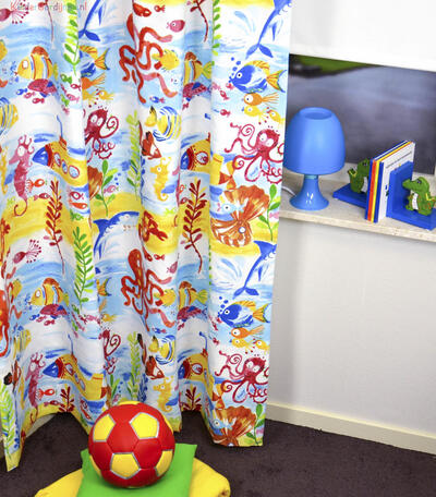Het Undersea kindergordijn verandert de kinderkamer in een levensecht aquarium! De kleurrijke gordijnstof vrolijkt iedere kinderkamer op.
