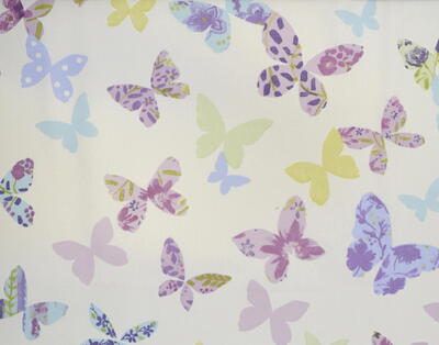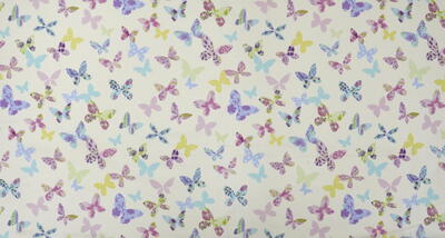Vlinder, vlinder zoek me dan. Vliegen zó luchtig en sierlijk, ik kan daar wat van. Een vlinder verrast en streelt het oog, wat bijzonder om dat op een gordijn te ‘vangen’. Het kleurrijke & kunstzinnige, een ideale inspiratiebron voor een prachtig kindergordijn. De stof is leverbaar in 3 verschillende kleurcombinaties: een warm-witte ondergrond met roze en andere pasteltinten of zachtpaars met lavendelblauw. De andere ondergrondkleur is fraai zandkleurig, waardoor de witte omlijsting van de vlinders een extra dimensie geeft. De print is op de voorzijde gedrukt van de dicht geweven, matte stof. De weefstof is duidelijk van mooie kwaliteit, het heeft een vlotte en sportieve uitstraling. Heel leuk om een tintje uit dit gordijn op de wand te schilderen, dat geeft een extra sprankelend effect. Kies jij voor dit sierlijke & tijdloze vlinderpatroon?