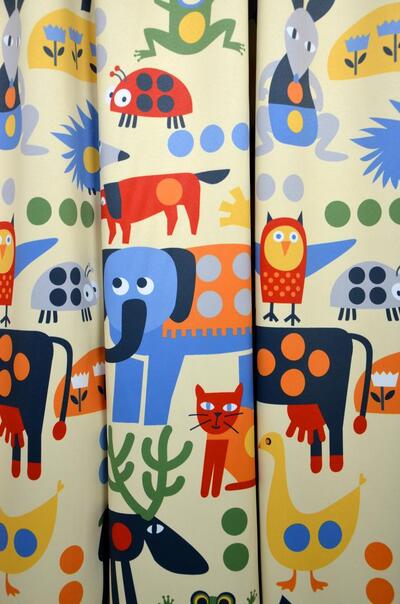 Kleurrijk kindergordijn met prachtige dierenillustraties. De gordijnstof is verkrijgbaar in drie uitvoeringen en uitermate geschikt voor scholen en kinderdagverblijven. De polyester gordijnstof is niet alleen verduisterend, maar ook brandvertragend en anti-bacterieel volgens de DIN 4102 B1 certificering.