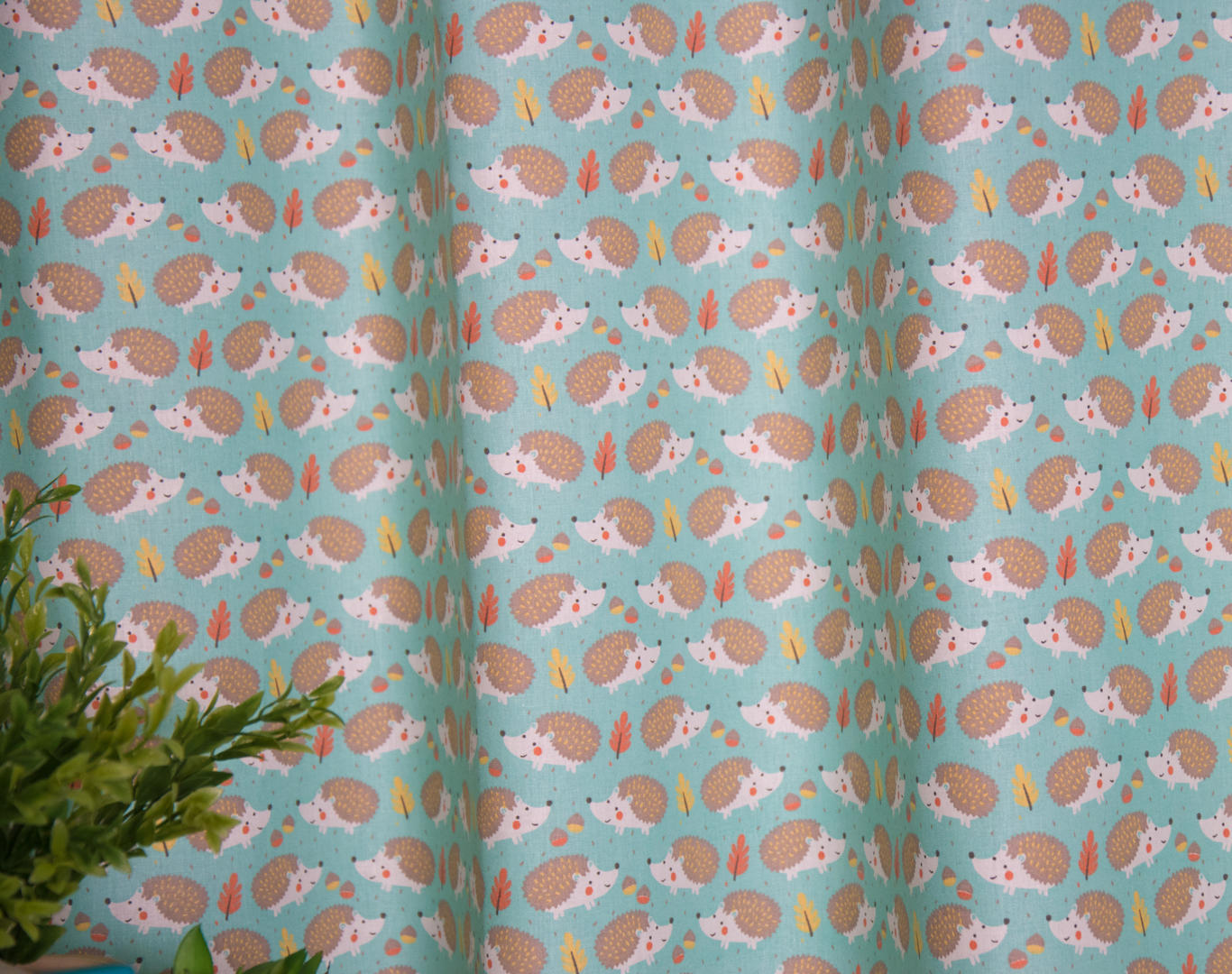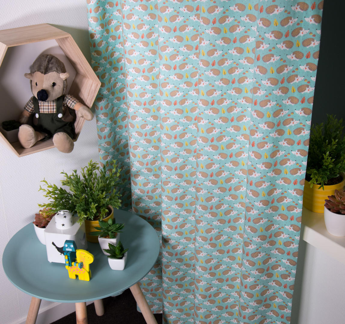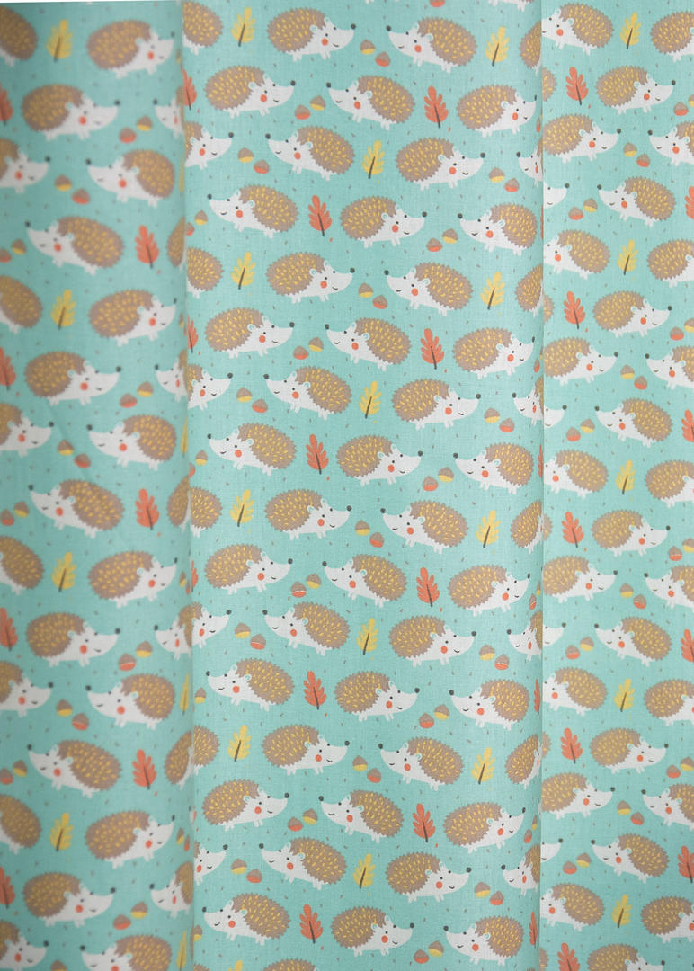 De schattige egeltjes van zo’n 4cm groot kleuren dit mint kleurige gordijn. Speels om & om gedrukt, want dat maakt het juist extra leuk! De print is op de voorzijde van de matte, fijn geweven katoen gedrukt. Voor de jongens en meisjes slaapkamer perfect te combineren met één wandje geruit- of stippenbehang. Voor verduistering kan je dit gordijn extra laten voeren. Val jij voor al deze vrolijke kraaloogjes?